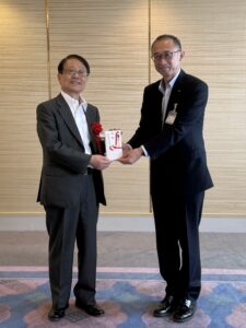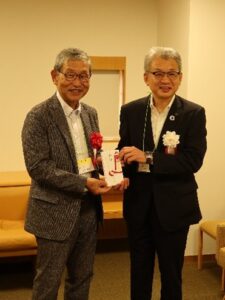 - (協賛金授与式)山田理事長から前田富山市上下水道事業管理者に協賛金を授与